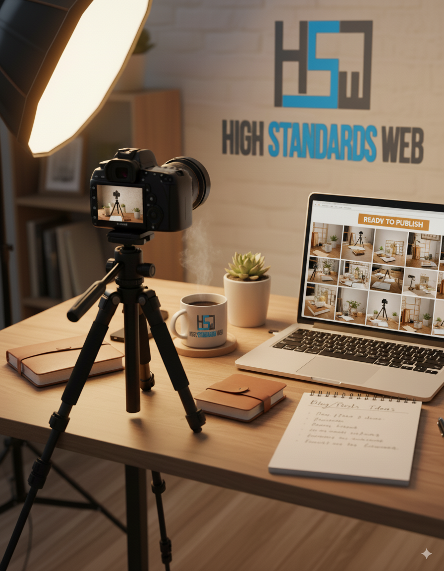 At High Standards Web LLC, we provide a full range of services designed to get your business online quickly and help it grow. From our flagship Website in One Day service to advanced custom websites, workflow automation, business applications, SEO, and content creation, every solution is built to save you time, attract more clients, and strengthen your brand.